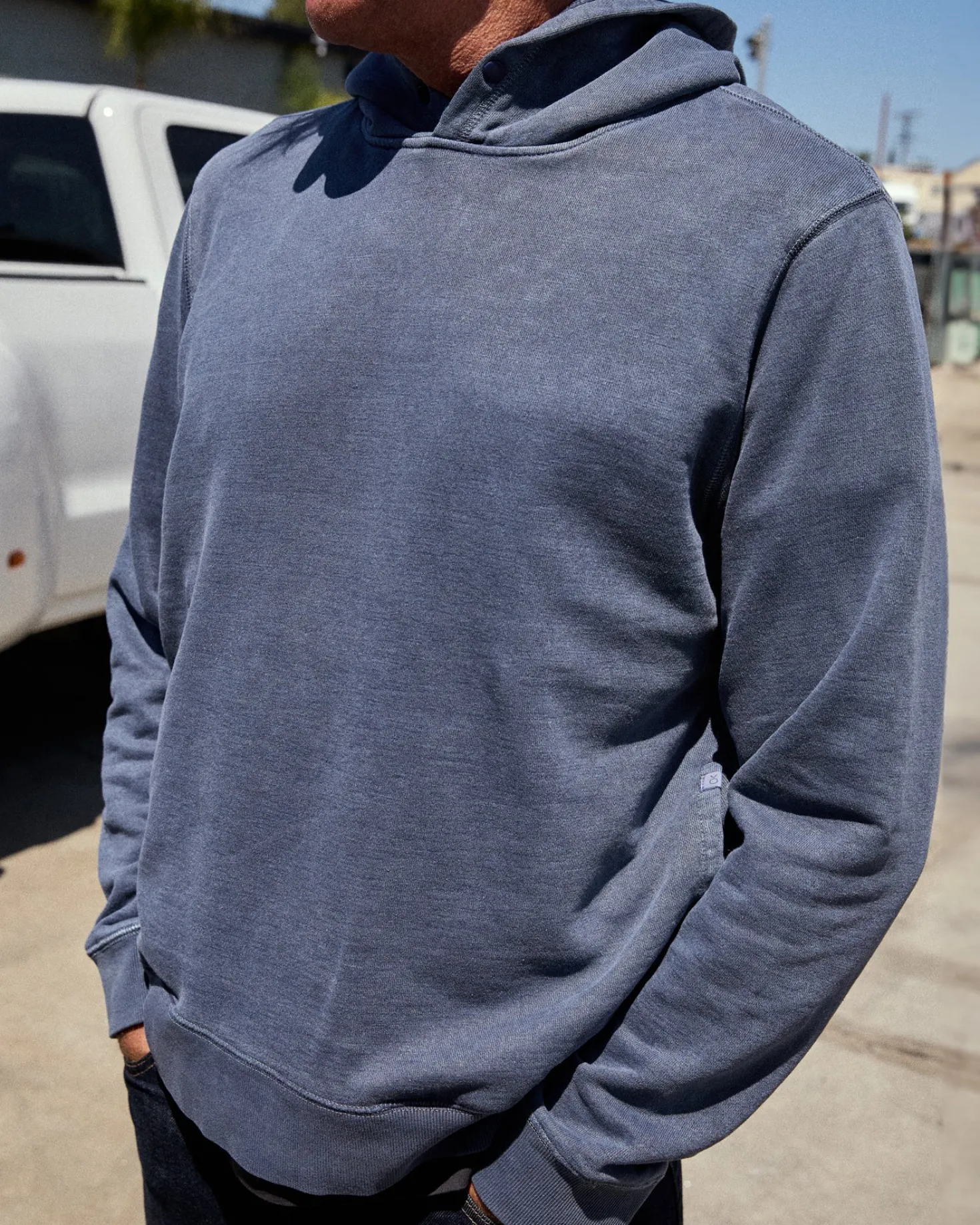 - The classic hoodie reimagined. We swapped the bulky kangaroo pouch for on-seam pockets and added a rubberized snap closure.