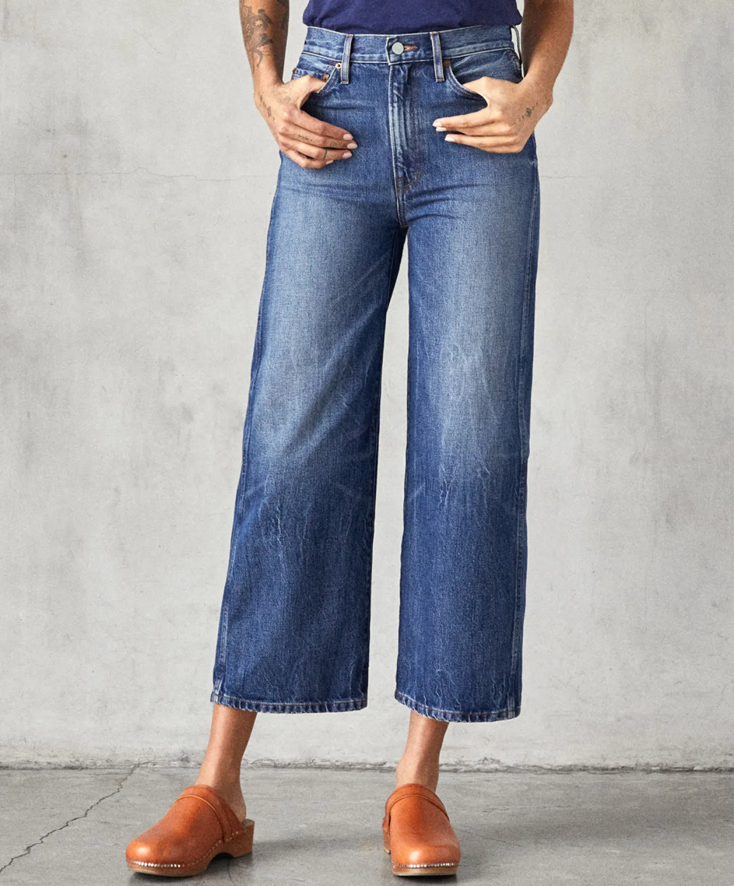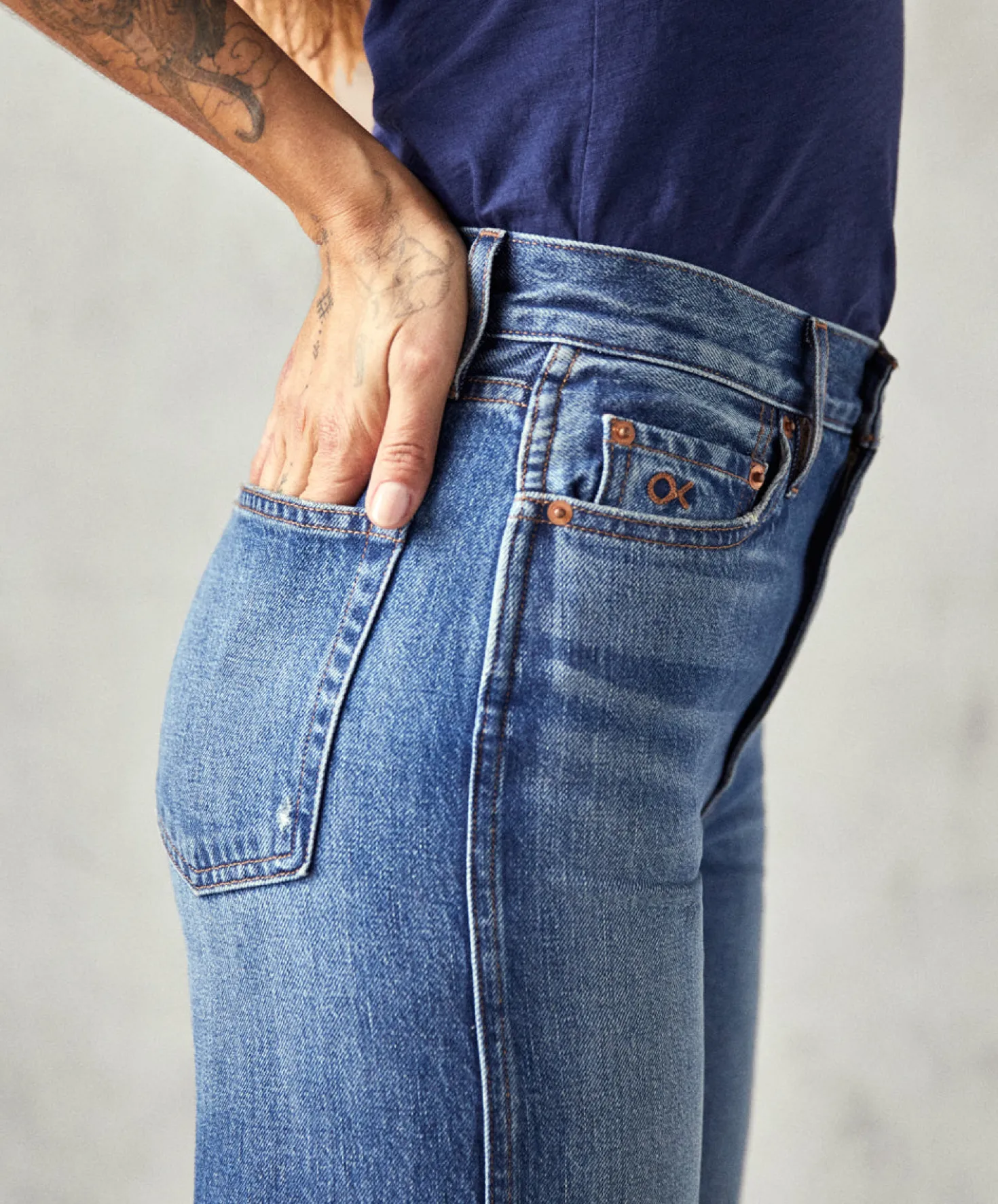- Modern wardrobe staple designed with a comfortable high-rise waist, fitted hip, and subtle stove-pipe leg opening.